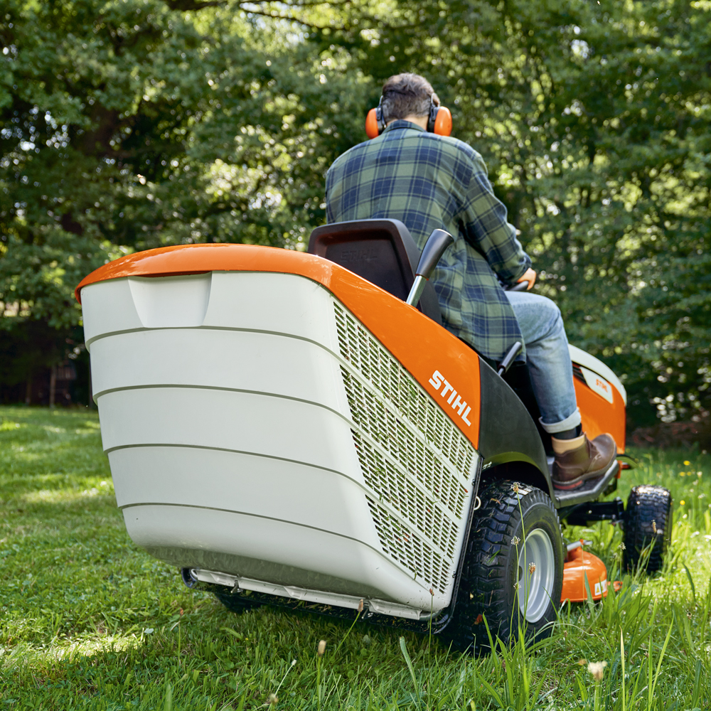 Met de wendbare STIHL zitmaaier RT 5097 maai je met plezier. Met zijn hoge rijcomfort en overzichtelijk opgestelde bedieningselementen biedt deze zitmaaier een doordachte techniek om moeiteloos te werken. Zo kun je bijvoorbeeld de stoel met comfortvering zonder gereedschap heel precies aan je lichaamslengte aanpassen. De eenvoudige verstelling van de snijhoogte en de elektromagnetische messenkoppeling waarmee je het maaiwerk in- en uitschakelt, zorgen voor gelijkmatige prestaties en een mooi resultaat. Het geleidesysteem langs de twee kanten van het maaiwerk helpen om de grashalmen over de hele snijbreedte op te vangen en naar de messen te geleiden. En de comfortabele 1-pedaal-wielaandrijving helpt je om bij het maaien nog wendbaarder te kunnen manoeuvreren. Met slechts één handbeweging schakel je de rijrichting van de zitmaaier om, van vooruit naar achteruit en omgekeerd. En met de praktische sabelgreep maak je de grasopvangbox van 250 liter moeiteloos leeg van op de bestuurdersstoel. De kunststof grasopvangbox in de vorm van een baggeremmer is bovendien heel gemakkelijk schoon te maken.