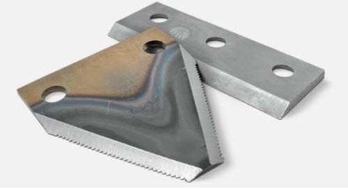 • Snijsysteem: 1 vast slijpbaar mes in gehard staal en 6 mobiele omkeerbare hamers in gehard